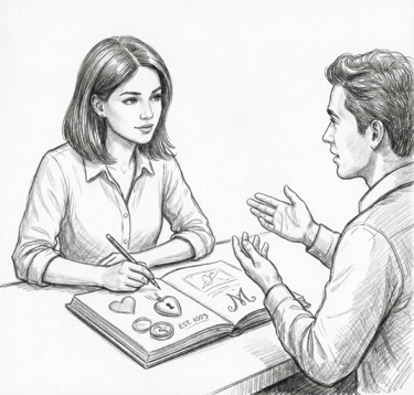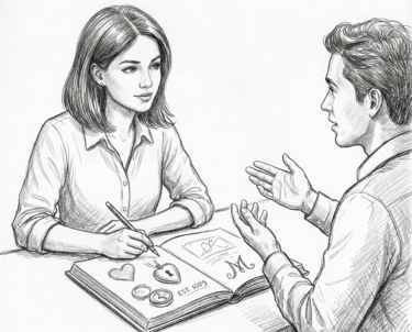 We develop detailed hand-drawn concept sketches that visually interpret your story and inspirations. Each design is carefully crafted to achieve harmony, proportion, symbolism, and timeless elegance. During this stage, we collaborate with you to refine the concept, ensuring the design reflects your personality, aesthetic preferences, and emotional connection to the piece.