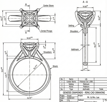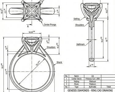 Once the concept design is finalised, it is transformed into a highly precise CAD (Computer-Aided Design) model. This stage ensures structural integrity, long-term durability, ergonomic comfort, accurate gemstone placement, and balanced proportions. CAD engineering allows us to perfect every technical detail, seamlessly blending artistic creativity with advanced jewellery engineering standards.
