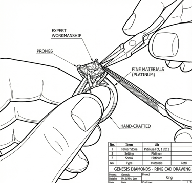 Our master artisans then begin the meticulous process of bringing your design to life. Using carefully selected premium metals, diamonds, and gemstones, each piece is handcrafted with exceptional precision and attention to detail. Every stage of production is closely monitored to ensure it meets Genesis craftsmanship standards while staying true to your approved design and emotional vision.